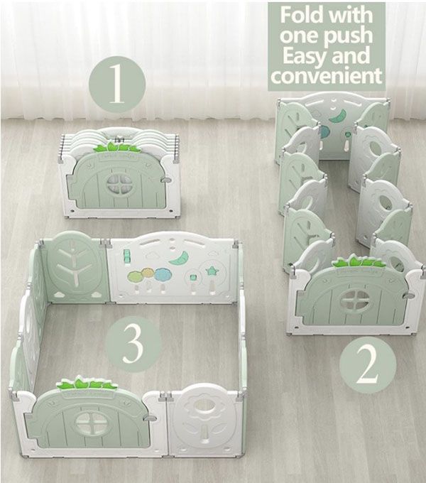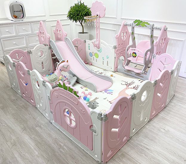 Bộ quây nhựa Baby Cosi Forest Có thể gấp gọn, không cần tháo rời lỉnh kỉnh, thay đổi nhiều kiểu dáng, vuông tròn tuỳ diện tích từng gia đình. Sản phẩm có thể tách rời xích đu và trượt khi không dùng đến.