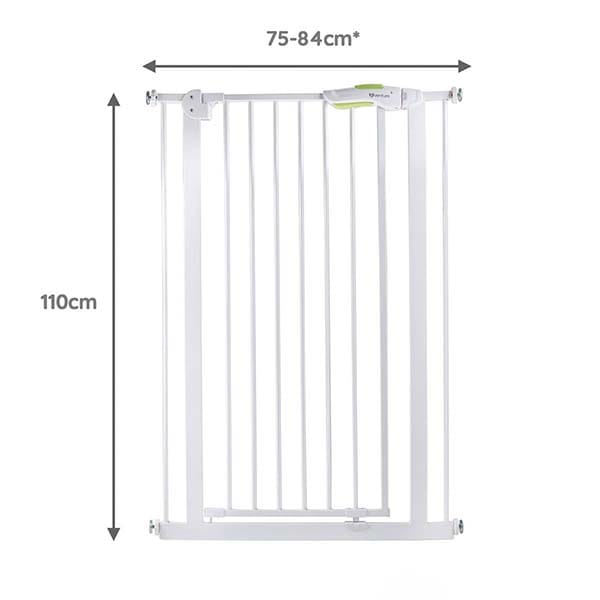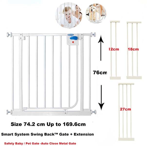 Cổng xoay thông minh có hệ thống khóa ba và tự động đóng lại bằng xích đu. Nó được gắn vào tường với áp lực, loại bỏ phần cứng có thể gây ra thiệt hại.