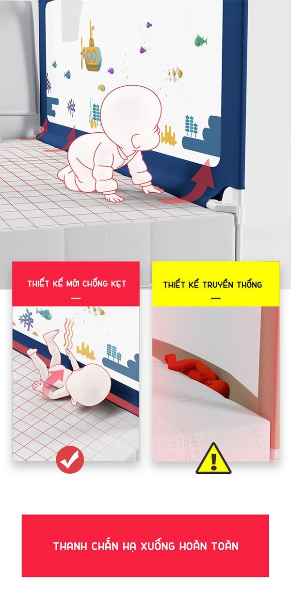 Thiết kế chống kẹt cho bé không sợ bé bị kẹt giữa nệm và thanh chắn đảm bảo an toàn cho bé