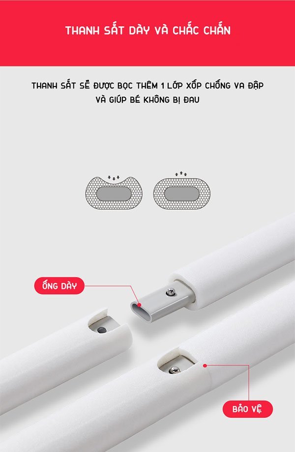 Ống được bảo vệ bằng xốp giúp bé không bị đau khi va chạm khi chơi trên giường.