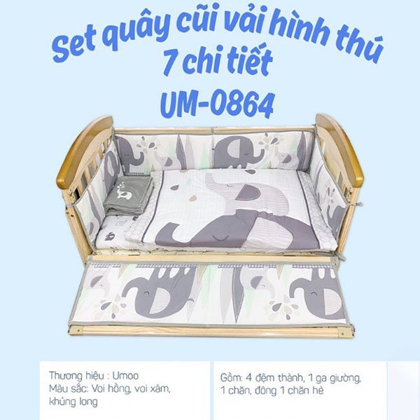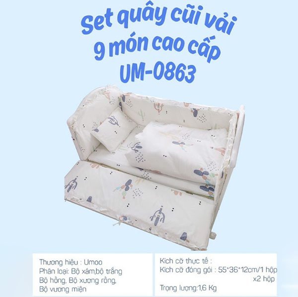 Set quây vải cao cấp 9 món bao gồm: Gối / Ruột gối / Chăn / Ruột Chăn/ Ga bọc đệm / Quây.