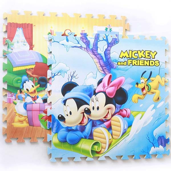 Với chủ đề phim hoạt hình Disney khác nhau như: Donald, Dora, Winnie the Pooh, Mickey… Tấm thảm không chỉ giúp bé tập đi và nằm chơi an toàn mà còn là vật trang trí cho căn phòng của bé thêm tươi vui, đẹp mắt.