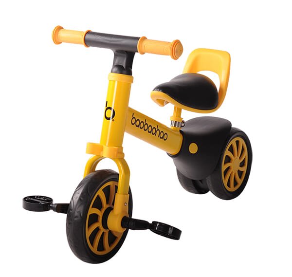 Một chiếc xe cho ba mục đích: Cho bé chòi chân để đẩy trượt và ngồi lái đạp xe và là xe cân bằng cho bé