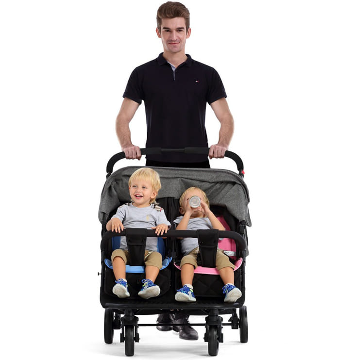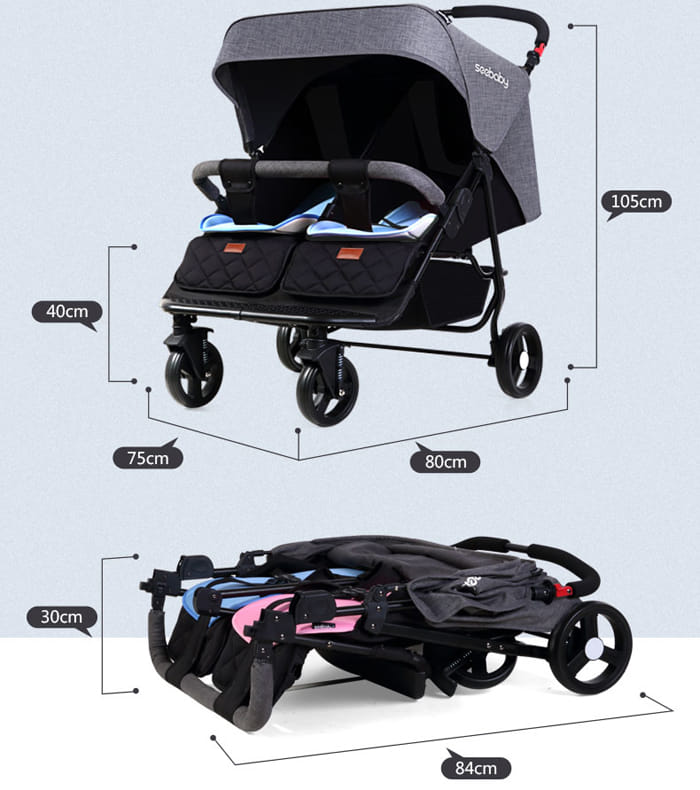 Thường thì khi có 2 em bé, hầu hết mọi thứ đều phải sắm nhân đôi lên. Thế nhưng việc chọn xe đẩy đơn giản hơn khi nhà sản xuất thiết kế 1 chiếc xe mà 2 bé có thể cùng ngồi thoải mái và chỉ cần 1 người đưa cả 2 bé đi chơi vẫn rất dễ dàng.