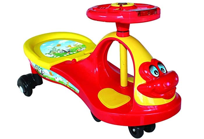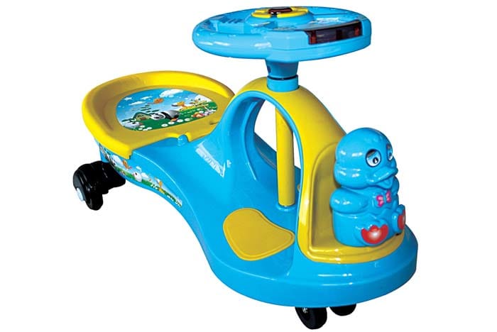 – Phía trước đầu xe lắc có đèn, bên trên có nút nhạc.